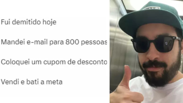 Um profissional ganhou destaque nas redes sociais nesta semana ao relatar que foi demitido. De forma inusitada, ao enviar um e-mail de despedida para a empresa, conseguiu superar a sua meta de vendas do mês. Fernando Pinheiro, analista de marketing e comercial, compartilhou em seu perfil no Twitter: "Caí sim, mas caí mostrando o que perderam. Monetizei minha demissão".