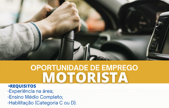 Motorista– Desejável Ensino Médio Completo, experiência na área, Habilitação (categoria C ou D).