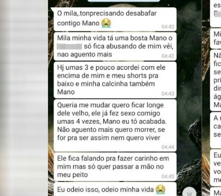 Entre as mensagens enviadas via WhatsApp, a menina pede para se mudar para a casa da irmã. “Se você quiser, te ajudo a pagar o aluguel, água, mas por favor me tira daqui”. Ela ainda prometeu que reagiria caso o homem tentasse abusar dela novamente. “Vou bater nele. Ele pode até me bater, mas não quero mais sofrer por isso”, escreveu.