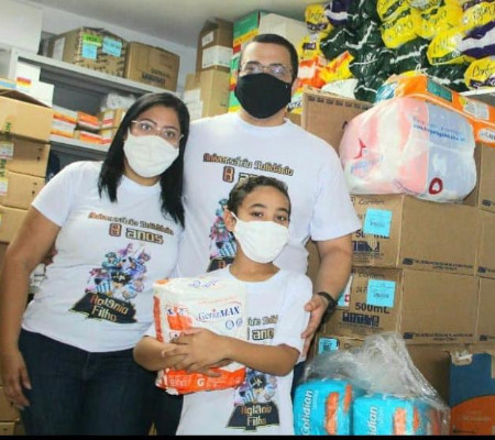 Aglânio Filho e sua família durante a entrega de fraldas descartáveis nos hospitais de Teresina