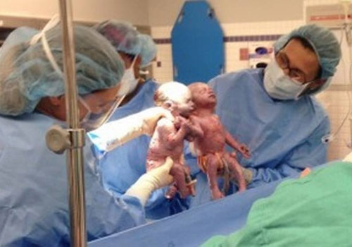 Quando ainda estavam na barriga da mãe, as gêmeas Jenna e Jillian já eram literalmente inseparáveis. Devido a uma formação atípica, a gravidez monoamniótica, as duas dividiam espaço num mesmo saco amniótico antes de nascer. Por isso, desde de março deste ano, a mãe Sarah Thistlethwaite precisou ficar internada, acompanhando de perto os sinais vitais das filhas e seu estado de saúde. Após a cesárea, na última sexta-feira, as gêmeas não romperam seus laços e vieram ao mundo de mãos dadas.