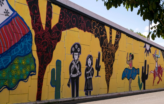 A Ponte da Amizade, que liga as cidades de Teresina (PI) e Timon (MA), ganhou intervenções artísticas de grafiteiros que representaram os diversos símbolos da cultura local no amplo paredão na alça da ponte, pelo lado de Timon.