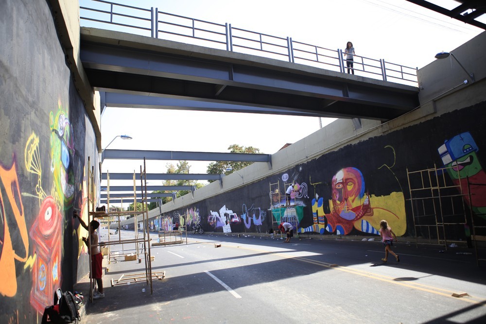 Durante todo o dia de ontem (31), quem passou pelo viaduto da Avenida Higino Cunha com Marechal Castelo Branco pôde ver toda a movimentação dos grafiteiros em prol da ação. Mas as intervenções de grafite já haviam sido iniciadas desde o dia 20 e seguiram até ontem, quando grande parte do paredão do viaduto recebeu cores e desenhos variados.
