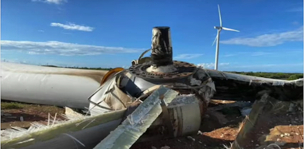 Parte de uma torre eólica desabou na tarde de domingo (02), assustando moradores da comunidade Labino, localizada no município de Ilha Grande, região Norte do PiauÍ. De acordo com a empresa Ômega, responsável pelas torres de energia eólica na região, informou por meio de uma nota que algumas peças se desconectaram de um aerogeradores.