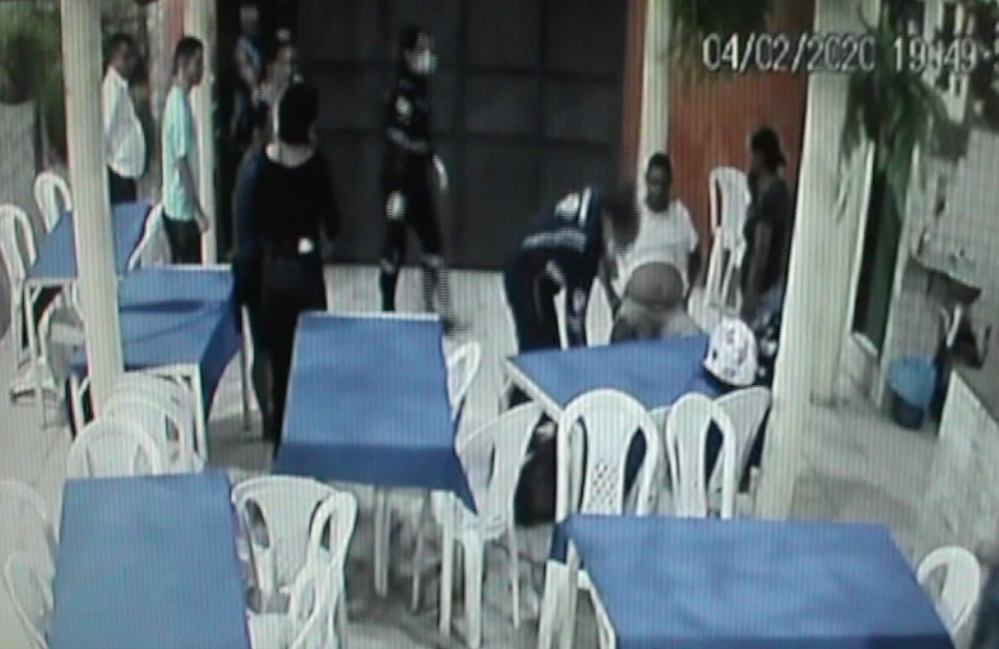 Nas imagens é possível ver os clientes da pizzaria sentados na mesa quando três bandidos armados chegam no local anunciando o assalto. Eles realizam um arrastão no local e na saída, um dos bandidos atiram no cliente que estava de costas e não esboçou nenhuma reação.