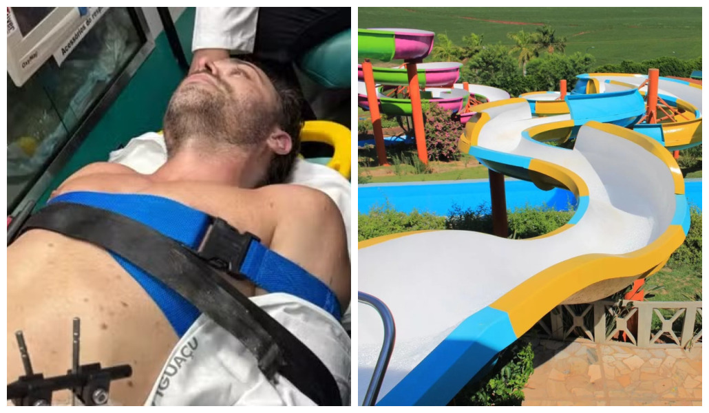Homem sofre fraturas múltiplas após cair de tobogã no Itaipuland Park, no Paraná.