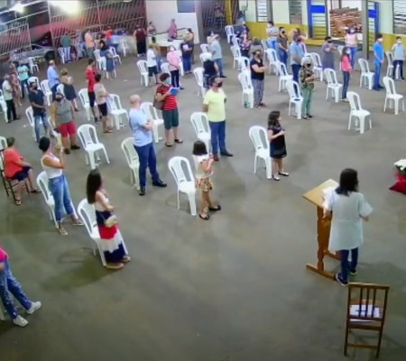 Um homem tentou correr de uma abordagem policial e atrapalhou uma missa de 7º dia que era realizada na noite de sábado (30), em Jales (SP). Um vídeo registrou a correria dos fiéis.