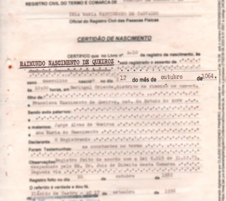 Queiroz entrou na Justiça para que o erro fosse corrigido e a data correta, 12 de outubro de 1964, constasse na nova certidão. Atualmente, ele mora em Rio Branco e tem 55 anos.