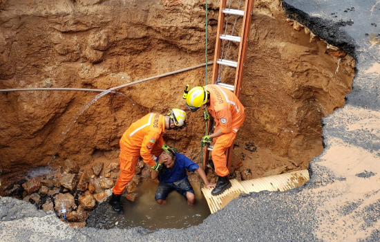 “Nós deslocamos com três viaturas, uma de incêndio, salvamento e de resgate, que é a ambulância. Chegando lá, a gente constatou que ele estava na cratera, usamos técnicas de içamento, usamos escadas, cordas, e colocamos um EPI nele para resguardar a integridade física”, pontuou.