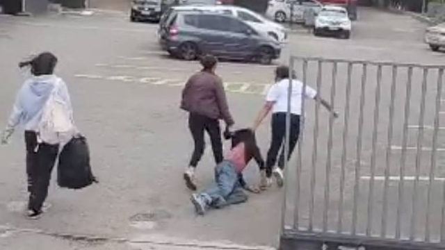 Em um outro vídeo feito por uma das testemunhas, o homem já é visto do lado de fora de ônibus e próximo à portaria de um batalhão da PM. Ele é visto caído no chão, recebendo chutes, quando de repente as duas mulheres o suspendem pela camisa e o arrastam por alguns metros até a entrada da delegacia. Durante o trajeto uma terceira mulher acompanha as outras duas segurando uma mochila que possivelmente seria do abusador.
