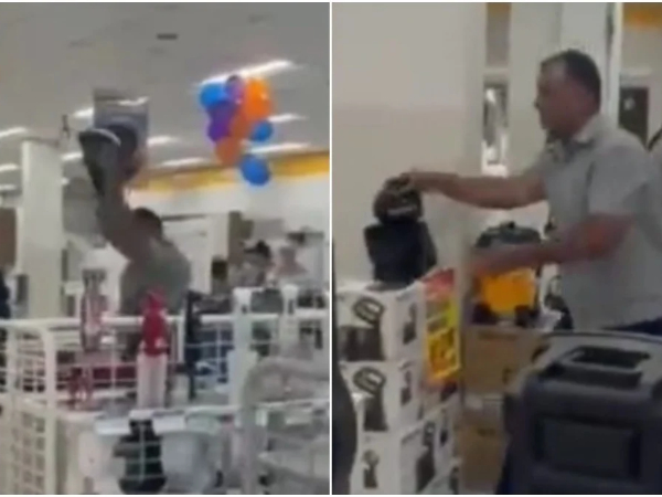 Nervoso com a situação, o homem começou a quebrar uma série de produtos na loja, como cafeteiras, televisores, celulares e aspiradores de pó. Ele também teria empurrado a gerente da loja, que desmaiou ao cair no chão.