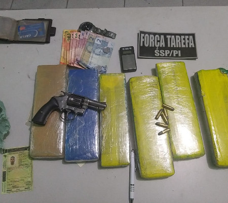Um homem de 35 anos, identificado apenas pelas iniciais G.W.L.B, foi preso na noite desta terça-feira (15) pela Força Tarefa da SSP-PI - Secretaria de Segurança Pública do Piauí, com 06 tabletes prensados de maconha e um revólver 32 municiado, após realizar abordagem de rotina em veículo suspeito na Av. Getúlio Vargas, no bairro Vila da Paz, zona Sul da capital.
