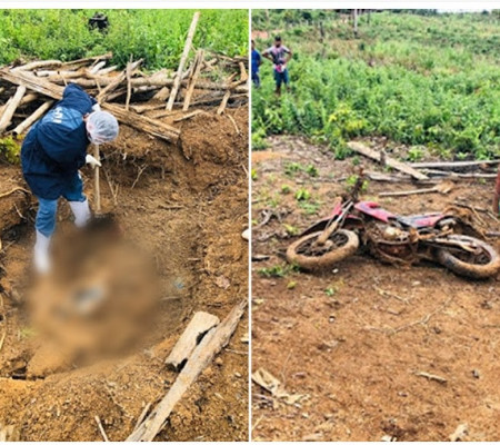 Durante as diligências, a Polícia Civil tomou conhecimento de que a motocicleta da vítima encontrava-se enterrada no quintal da residência de “Paulinho”.
