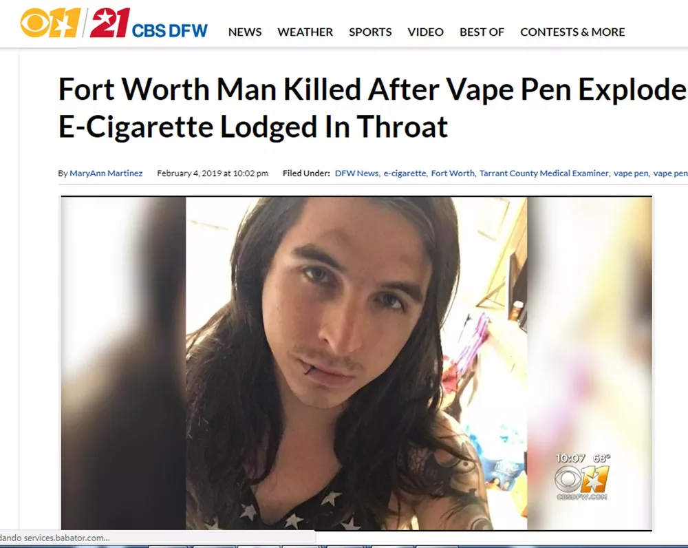 Um homem de 24 anos morreu no Texas depois que um cigarro eletrônico explodiu em seu rosto. O acidente ocorreu em 27 de janeiro quando William Eric Brown usava o dispositivo dentro de seu carro, parado em um estacionamento na cidade de Fort Worth, de acordo com informações da CNN.