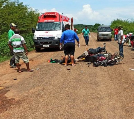 Um grave acidente envolvendo duas motocicletas deixou uma pessoa morta e outra gravemente ferida no início da tarde desta terça-feira (26), em um trecho da PI-211, nas imediações da localidade Varjora, no município de Esperantina, no Norte do Piauí.