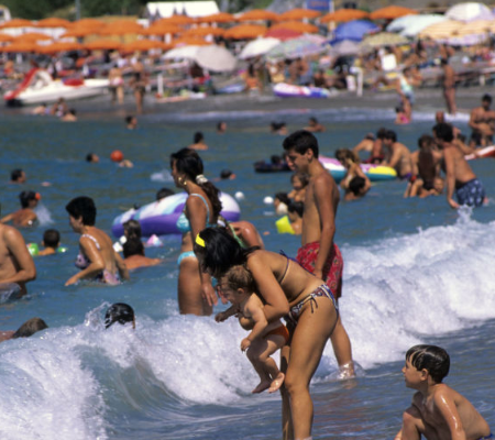 Na tarde da segunda-feira (8), um homem portando uma faca que estava em um bar à beira-mar na praia de Rimini começou a se masturbar ao lado de uma mulher e três crianças.