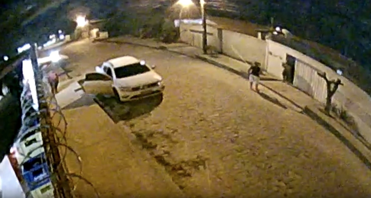 Imagens de câmeras de segurança de uma residência que fica localizada na rua onde o fato aconteceu mostram o exato momento em que a discussão entre os dois teve início.