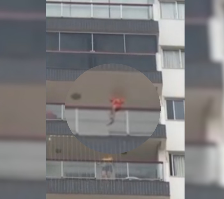 Imagens obtidas pela TV Anhanguera mostram quando uma criança corre perigo, sentada sobre o parapeito da sacada de um apartamento no Setor Bueno, em Goiânia. A gravação foi feita por uma pessoa que passava pela rua e se assustou com a cena, na sexta-feira (22). As informações são do G1.