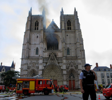 Um incêndio atingiu a Catedral de São Pedro e São Paulo, em Nantes, na França, neste sábado (18). O fogo foi rapidamente controlado e ninguém ficou ferido.Vitrais do século XVI e o órgão foram destruídos. Uma fumaça preta foi vista saindo entre as suas torres, mas não chegou a atingir o telhado da construção que tem estilo gótico. As informações são do G1.