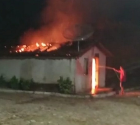 Imagens divulgadas nas redes sociais mostram a residência em chamas. É possível ver que as labaredas passam do telhado. Nas imagens um morador aparece tentando apagar o fogo com uma mangueira.