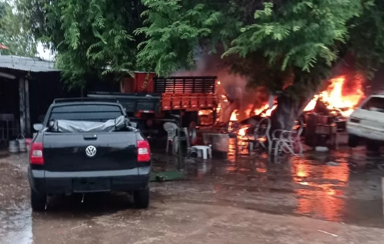 Um incêndio destruiu três veículos na área externa de uma oficina mecânica, na tarde desta segunda-feira (28), no bairro Marquês, zona Norte de Teresina.