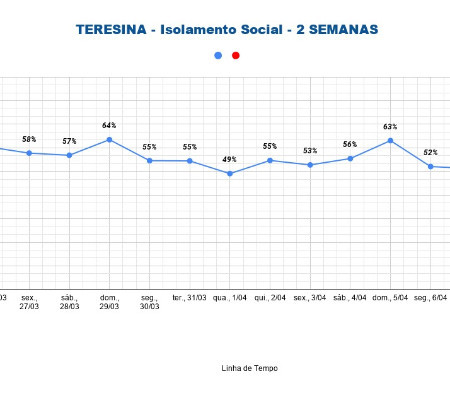 Cerca de 53% da população de Teresina cumpriu as orientações de isolamento social estabelecidas pelos decretos municipais e estadual e também pelos órgãos de saúde, como Ministério da Saúde e Organização Mundial de Saúde. Os dados são da startup InLocu e são atualizados diariamente pela Prefeitura de Teresina.