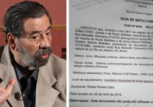 As causas da morte do coronel reformado do Exército Paulo Malhães, encontrado morto em seu sítio nesta sexta-feira, foram edema pulmonar, isquemia de miocárdio e miocardiopatia hipertrófica, segundo a Guia de Sepultamento do militar, obtida com exclusividade pelo GLOBO. O documento é necessário para realizar o enterro.