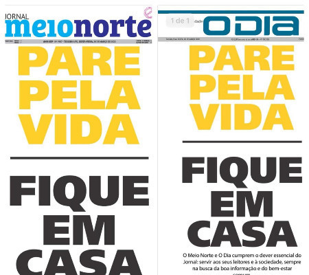 Os dois jornais piauienses foram pioneiros no Brasil ao publicar suas capas iguais com a frase 'PARE PELA VIDA, FIQUE EM CASA" na última sexta-feira (20/03)