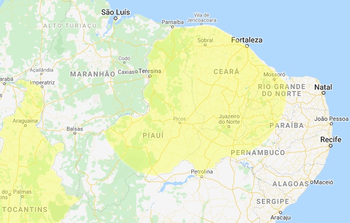 Nesta terça-feira (18), o Instituto Nacional de Meteorologia - Inmet emitiu alerta amarelo para forte temporal nas próximas 24 horas em Teresina e mais de 127 municípios do Piauí. O alerta pega toda a região Norte e Meio Norte do Piauí, abrangendo também o estado do Ceará e parte de Pernambuco, Rio Grande do Norte, Paraíba e Maranhão.