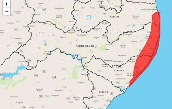 O Instituto Nacional de Meteorologia (Inmet) emitiu um novo aviso nesta quarta-feira (25) com grau de severidade de "grande perigo" para o litoral de estados como Paraíba, Pernambucoe Alagoas. O alerta se deu por causa das chuvas que atingem Alagoas e Pernambuco desde a noite de terça (24). Dois avisos já tinham sido emitidos na noite anterior, mas eram mais brandos que o atual.