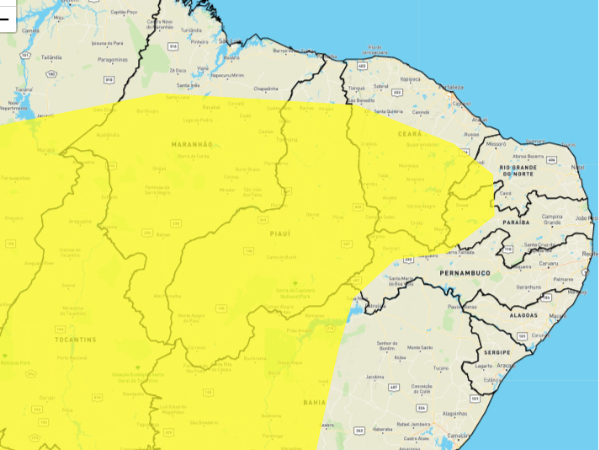 O alerta amarelo prevê umidade do ar entre 30% e 20% para as cidades das regiões Sudeste piauiense, Centro-Norte e Sudoeste Piauiense.