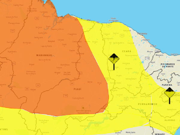 O alerta laranja (Perigo) abrange 171 municípios piauienses, entre eles Altos, Teresina, Picos e São Raimundo Nonato.