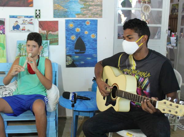 João Daniel, de 12 anos, é destaque nas atividades. “Aqui é bom pelo simples fato da gente aprender música, desenho e muitas outras coisas. Aqui desperta a chance da gente aprender algo novo. A música é algo que gosto muito de fazer em horas vagas. Aqui apreciei mais”, considera.