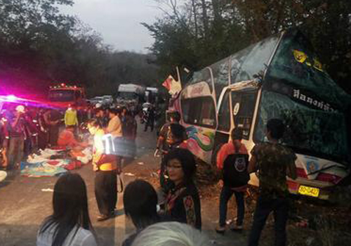 O acidente ocorreu de madrugada na província de Prachinburi, quando o ônibus de dois andares - com alunos com entre 10 e 14 anos - bateu em um caminhão. "Parece que o freio do ônibus falhou ou o motorista dormiu", disse Thamvijarn.