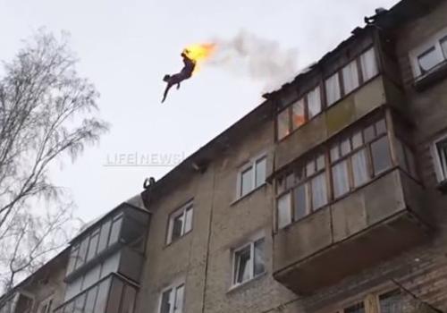 Jovem russo ateou fogo em si mesmo e pulou do alto de um prédio com cinco andares;veja o vídeo