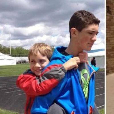 Hunter Gandee, um adolescente de 14 anos de idade, de Michigan, realizou uma caminhada de 65 quil?metros com seu irm?o de 7 anos de idade, pesando 50 quilos, nas costas.