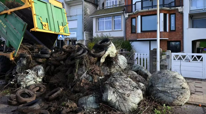 Agricultores despejam pneus e lixo em frente à casa Macron | Foto: Bernard Barron/AFP
