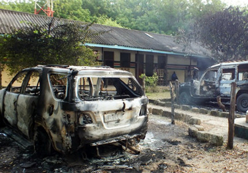 Os agressores também atearam fogo em carros de polícia que estavam estacionados em frente a uma delegacia e atiraram contra hotéis e um banco, disseram fontes da polícia aos jornais locais nesta segunda-feira.