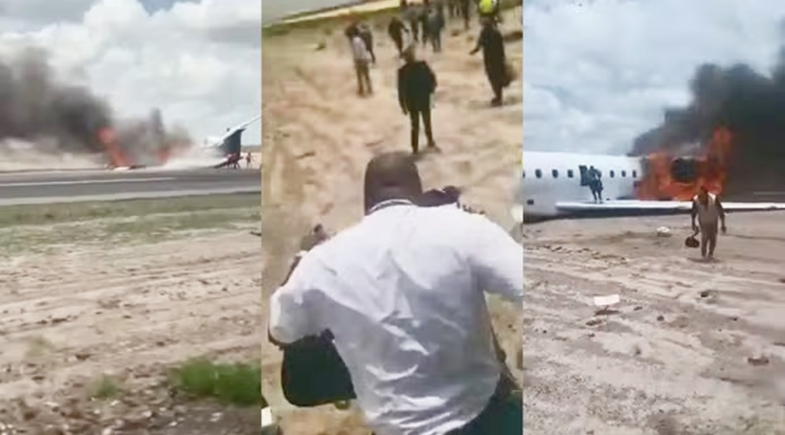 Avião com ministro da Mineração do Congo pega fogo ao pousar | Foto: Reprodução/redes sociais