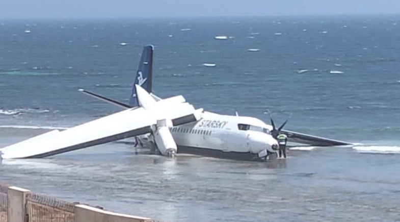 A aeronave precisou retornar ao Aeroporto Internacional Aden Adde, em Mogadíscio, mas saiu da pista e só parou próxima à costa.