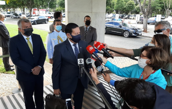 Questionado sobre a ida de Bolsonaro à Rússia, quando o presidente ser solidário ao país e que Putin buscava a paz, Mourão não quis comentar.
