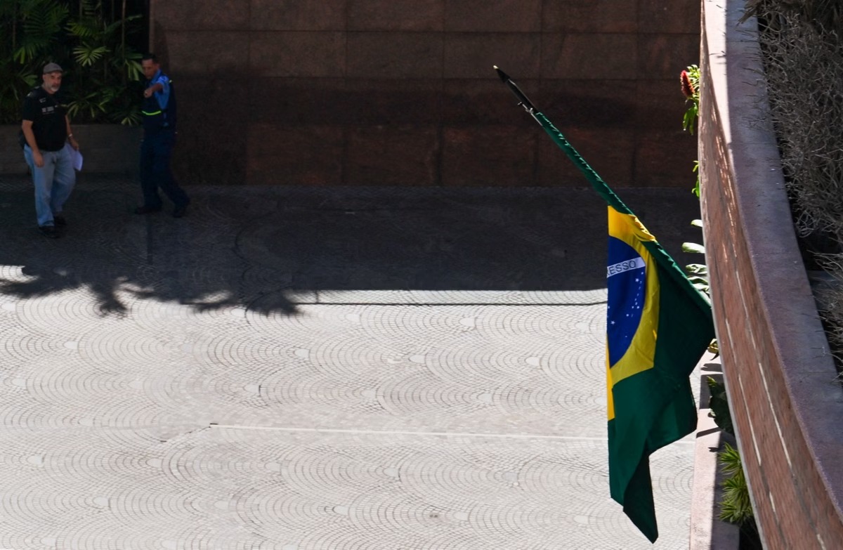 Bandeira brasileira na Embaixada da Argentina na Venezuela | Foto: Juan Barreto/AFP