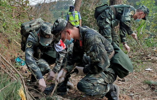 Centenas de socorristas foram enviados ao local do acidente em Wuzhou para vasculhar as encostas florestais íngremes onde os destroços do acidente foram espalhados. Equipes de resgate até agora encontraram partes dos destroços do 737. As emissoras estatais mostraram imagens de bolsas, carteiras e documentos de identidade pertencentes aos que estavam a bordo.