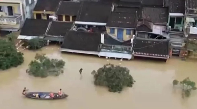 Imagens divulgadas pela televisão vietnamita na terça-feira (28) mostraram casas submersas, pessoas ilhadas nos telhados e equipes de resgate auxiliando os moradores, enquanto a chuva continuava a cair intensamente.