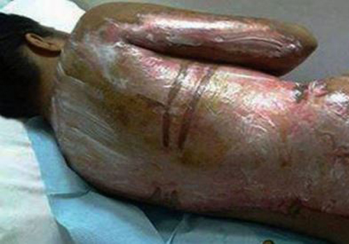 Na Arábia, uma mulher ficou coberta de queimaduras após terem jogado água quente nela por não fazer o café rápido o suficiente.