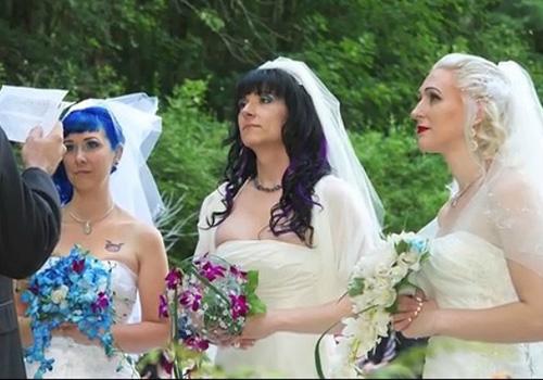 Elas são as protagonistas do primeiro casamento gay triplo realizado no mundo: Doll, Kitten e Brynn, de Massachusetts, EUA, se uniram em uma cerimônia em agosto de 2013, mas só agora decidiram contar a sua história. Cada uma delas, vestidas de branco, foi levada por seus pais até o altar onde trocaram votos e alianças.