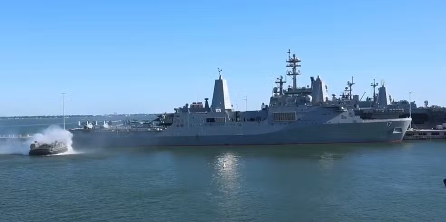 Segundo o governo dos EUA, o vídeo mostra um deslocamento “regularmente programado” do Grupo Anfíbio Pronto Iwo Jima, que inclui os navios USS San Antonio e USS Iwo Jima, além da 22ª Unidade Expedicionária de Fuzileiros Navais. Caminhões e equipamentos também aparecem nas imagens.
