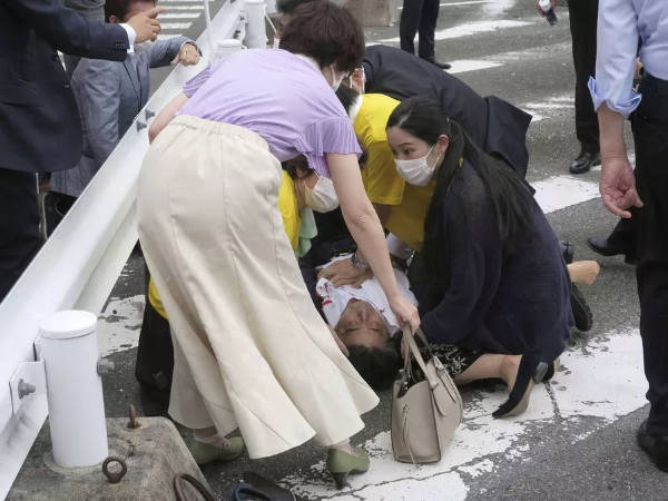 Segundo o relato de uma fonte anônima do Partido Liberal Democrático (PLD) feito à agência Jiji, Abe caiu após o ataque e sangrava pelo pescoço. Vários meios de comunicação informaram que o ex-chefe de governo foi atacado pelas costas, provavelmente com uma escopeta.