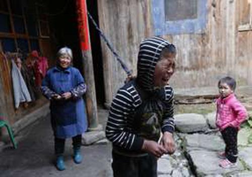 Uma família chinesa mantém preso a uma corda um menino de 11 anos diagnosticado como deficiente mental, para evitar que ele cause problemas aos vizinhos da vila de Daohui, em Lishui, na província de Zhejiang.