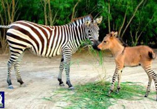 Um filhote híbrido de um jumento com uma zebra fêmea nasceu há uma semana no zoológico de Reynosa, no México. O animal que está sendo chamado pelos mexicanos de "zebrasno" tem 70 centímetros de altura e pesa 30 kg. Ele foi batizado com o nome de Khumba.
